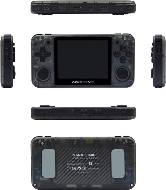 RG350P Handheld Game Console,Plug & Play Video Games with 32G TF Card 2500 Classic Games, Portable Game Console 3.5 Inch HD Screen Supports HDMI Output, Black Transparent